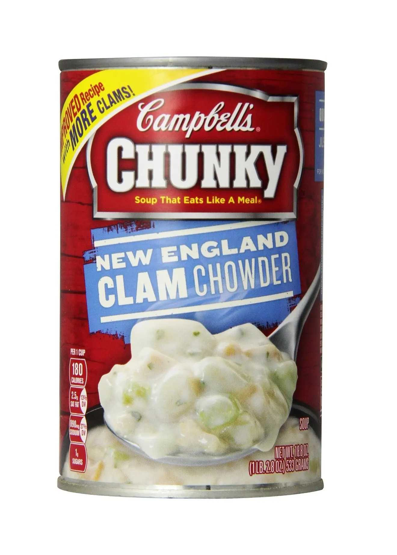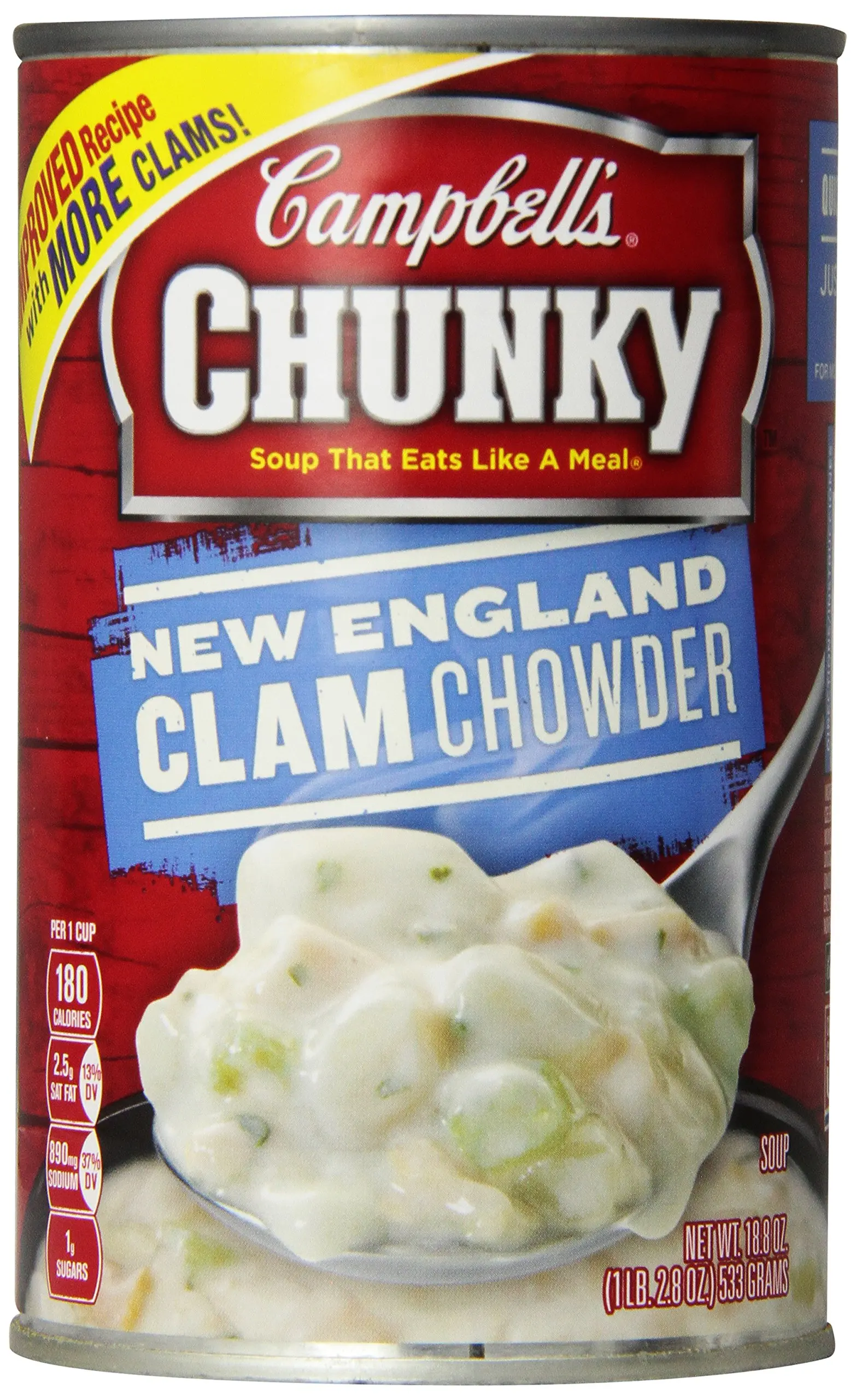 Phoenix • convenience • $. Must remain seated while eating. You'd need to walk 92 minutes to burn 330 calories. Bob shoudt breaks the major league eating capacity. Discussion from the chowhound markets, soup food community. Drain clams and reserve juice. I have never had this problem before, it must have been the bottom of the barrel. Total broth should just barely cover the potatoes, if it does not, add a little water. Campbell's homestyle new england clam chowder, 18.8 oz. It's affordable, super chunky, and thick enough to satisfy just about anyone. You can find smoked oysters right next to the canned clams. Hearty with a vibrant seafood flavor, this new england clam chowder will warm you up on any chilly day. Cape cod author joseph c.